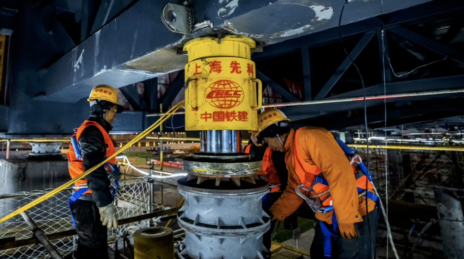 此次落梁过程中,采用了自主研发的156项目管理数智建造平台和铁路接触网伸缩吊柱装置,现场3级指挥体系、245名操作工人、30套设备均同步分级进行,不仅实现了对整个现场人员、机械、物料、施工进展等情况的动态掌控,还要在有限的“天窗点”内完成了复杂的精准落梁动作。