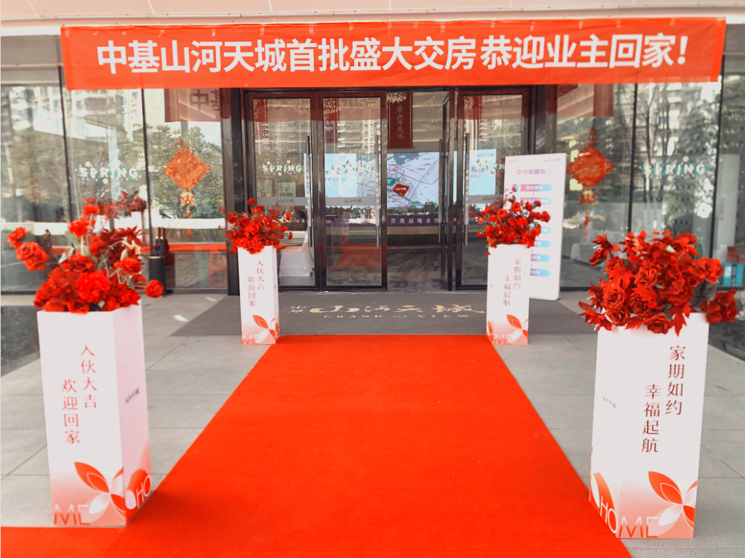 为了迎接尊贵的业主,山河天城营销中心内外一片喜气洋洋,明媚天气使得小区喜庆氛围格外耀眼。归家氛围的营造,让每一位业主的回家之旅都充满浓浓的仪式感和庄重感。
