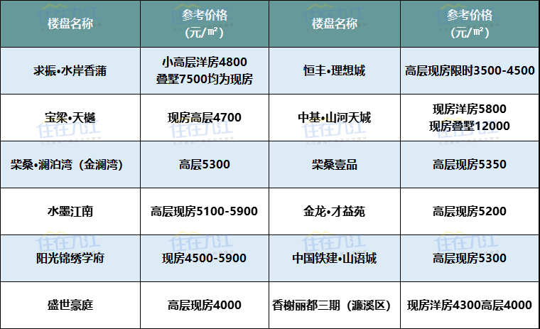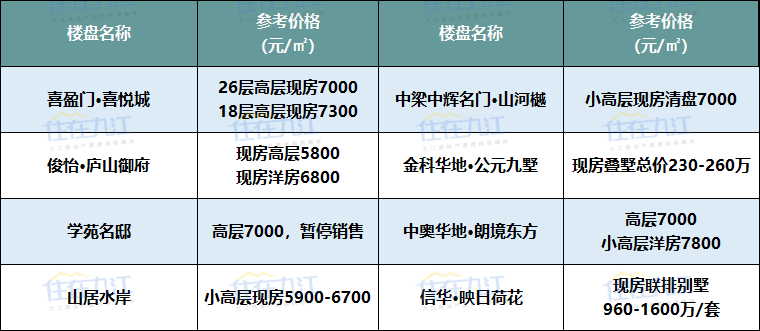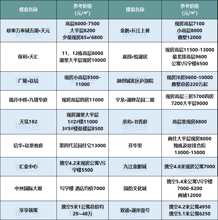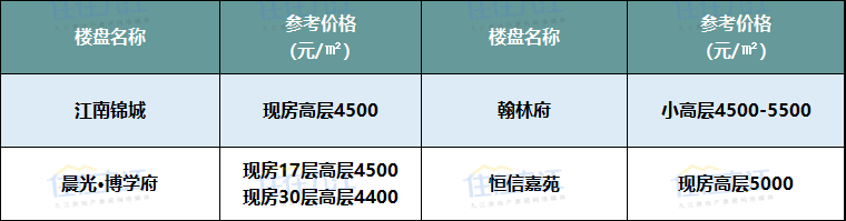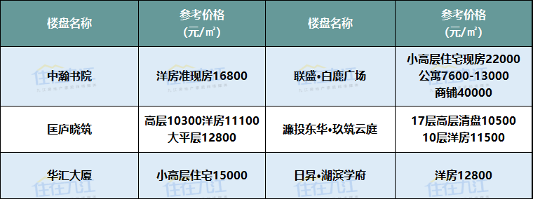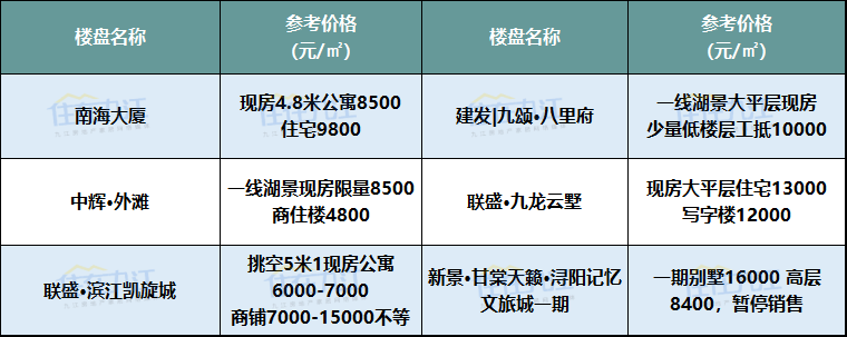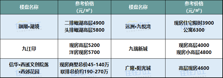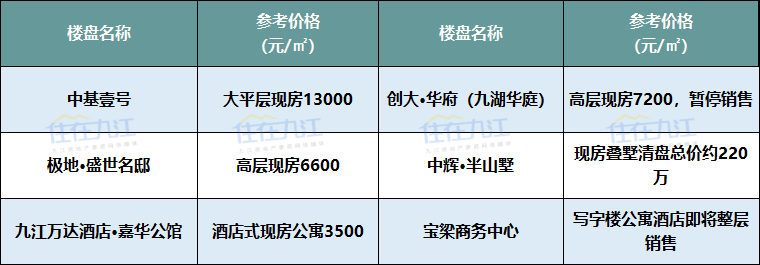 注:以上板块划分标准以九江规划局2017年公布的片区规划方案为准、以上项目价格为网络报价及调研数据,具体以售楼部为准。