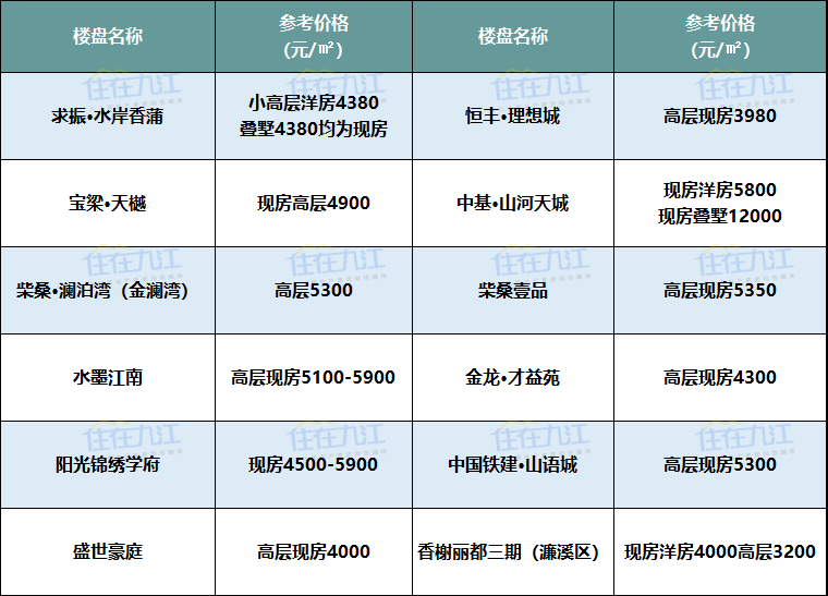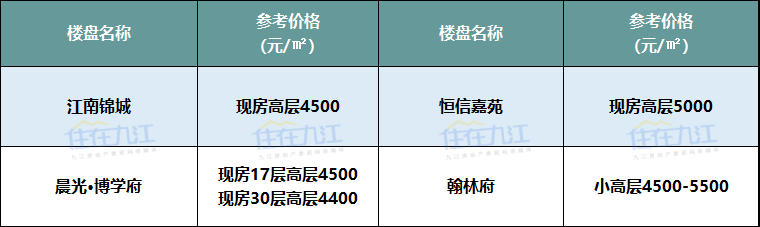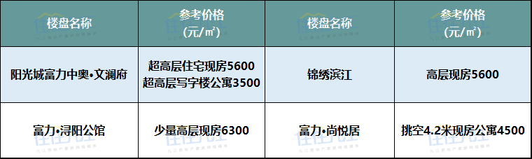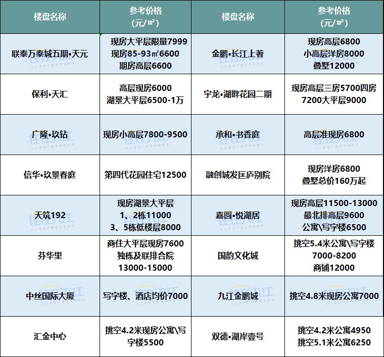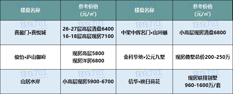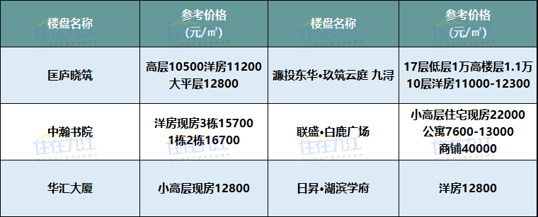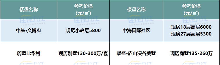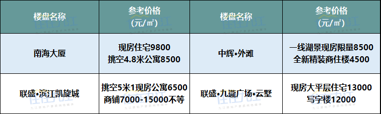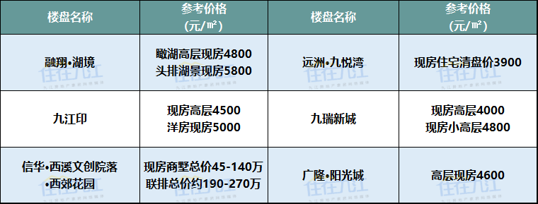 注:以上板块划分标准以九江规划局2017年公布的片区规划方案为准、以上项目价格为网络报价及调研数据,具体以售楼部为准。